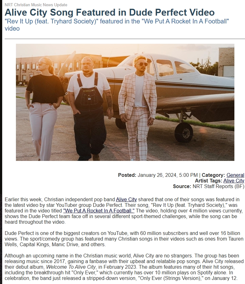 From electrifying festival stages to intimate worship nights, Alive City’s versatility and church-rooted foundation allow them to create unforgettable worship experiences. As their impact grows, so does their mission—to reach a generation searching for hope with music that’s honest, fearless, and full of faith.